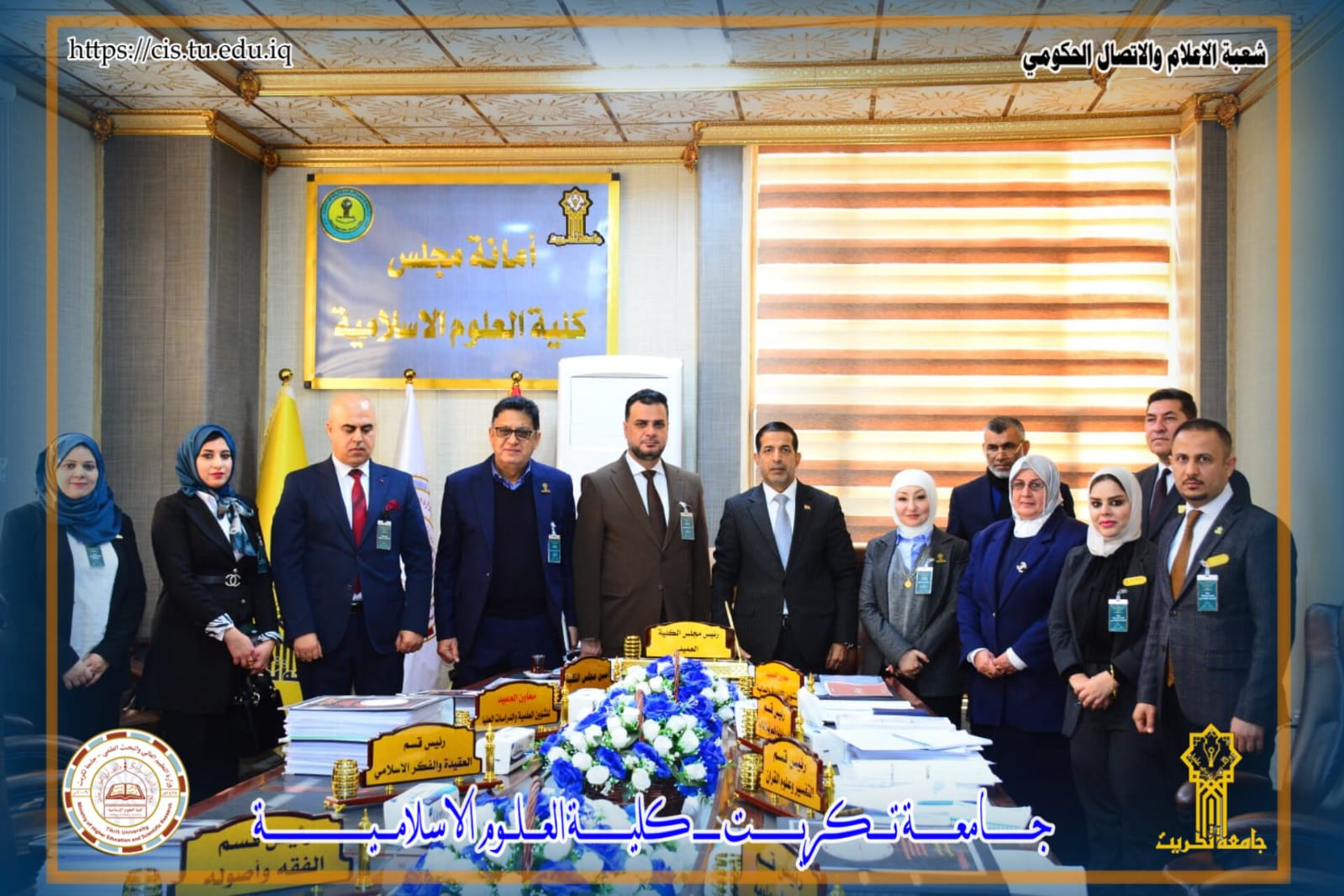 استقبل السيد عميد كلية العلوم الإسلامية الأستاذ الدكتور أنور فارس عبد فريق المقيمين الوطني للاعتماد المؤسسي وذلك في إطار متابعة تطبيق معايير الاعتماد المؤسسي المعتمدة من قبل وزارة التعليم العالي والبحث العلمي.