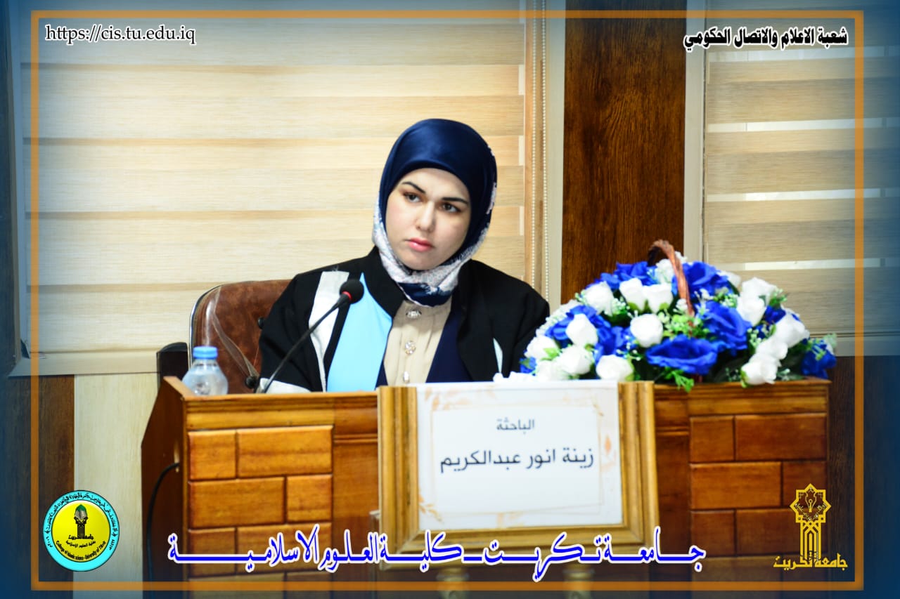 جرت في كلية العلوم الإسلامية _ قسم الحديث وعلومه مناقشة رسالة الماجستير للطالبة زينة أنور عبدالكريم احمد ، الموسومة بـ “مرويات محمد بن يحيى الانصاري (ت:221هـ) في الكتب التسعة_دراسة تحليلية " وذلك اليوم الاحد الموافق 19/10/2025 ، في قاعة صلاح الدين في كليتنا، تحت إشراف الدكتور جمال لطيف حسين.
